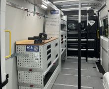 Schlosserarbeiten - Werkbank mit Schraubstock, Spannstangen, LED u. Zurrschienen